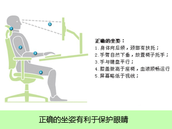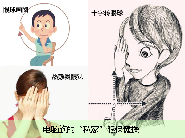 視疲勞是整日與電腦打交道的白領(lǐng)們不得不面對的問題,八成以上的白領(lǐng)們都或多或少的存在著眼干、眼澀、眼刺痛、視物模糊、流淚等眼部癥狀,如何你想以滴幾滴眼藥水來簡單應(yīng)付它,就大錯特錯了。 一、電腦族的護眼必修課 如果終日面對電腦是視屏族難以避免的宿命,那么怎樣才能保護眼睛,避免視疲勞傷害呢? 1)電腦:選用質(zhì)量好的屏幕,以避免屏幕閃爍和眩光;屏幕上顯示的亮度應(yīng)為周圍光線的三倍左右,不要讓窗外光線和室內(nèi)燈光在屏幕上造成反光,最好在屏幕前加裝特殊的微濾網(wǎng)或護目鏡。 2)坐姿:提倡座椅采用穩(wěn)定性好,高度和背靠為可調(diào)試的五角座椅;眼睛與電腦屏幕保持20~24寸為最佳距離,屏幕的上端稍微低于視線10~15度;調(diào)節(jié)座椅讓視線向下30度角度。鍵盤應(yīng)調(diào)整至打字時,前臂與地面平行。 ![]() 3)照明:要求是能同時看清屏幕、鍵盤和文件上的內(nèi)容,并能清除屏幕上的反射和閃爍,照明不要產(chǎn)生陰影和眩光;避免在操作者前上方出現(xiàn)光源或光源照射在視屏上,背景光不要太強;電腦安放位置不要放在窗口或附近,操作者也不要面對窗口;有人認為操作電腦時戴淺黃色防疲勞眼鏡有可能減少視疲勞。 4)環(huán)境:室內(nèi)通風(fēng)良好以確保有足夠的新鮮空氣;溫度適宜,有一定溫度的環(huán)境對減少眼干澀有益;避免空調(diào)的風(fēng)直接吹響眼部,必要時在電腦下放置加濕器;室內(nèi)禁止吸煙,不要在室內(nèi)點燃蚊香或噴殺蟲劑。 二、電腦族的“私家”眼保健操 ![]() 1)熱敷熨眼法:每次做5~10遍,能促進眼睛血液循環(huán),增進新陳代謝。 動作要領(lǐng):坐著,全身放松,閉上雙眼;兩手掌心相對,快速摩擦,使之生熱;趁熱用雙手捂住雙眼;待熱度散去后立即將雙手拿開,同時用力睜大雙眼。 2)十字轉(zhuǎn)眼球:可以鍛煉睫狀肌和外眼肌,幫助解除眼肌緊張狀態(tài),進而緩解視疲勞引發(fā)的各種不適癥狀。 動作要領(lǐng):每工作1小時活動一下外眼肌,左手臂伸直,放在眼前,豎起食指,然后上下左右大幅度移動,同時用右手遮蓋一只眼睛,另一只隨著指尖轉(zhuǎn)動,兩眼交替來做。 3)眼球畫圈:這個動作可以讓平時少用的眼部肌肉伸展開,有效緩解視疲勞。 動作要領(lǐng):取坐姿,手臂伸直在前方畫大圈,在脖子不轉(zhuǎn)動的同時,眼球跟隨指尖轉(zhuǎn)動,做2~5次后,再換左手畫圈。 三、電腦族護眼必備茶飲 1)枸杞茶 ![]() 枸杞甘平而滋潤,枸杞茶有滋腎、養(yǎng)肝、潤肺、明目、改善疲勞等功效??梢耘菟?,也可以干嚼,每次十來顆就差不多了,多吃容易引起燥熱。 2)菊花茶 ![]() 菊花對治療眼睛疲勞、視力模糊有很好的療效,中國自古就知道菊花能保護眼睛的健康,除了涂抹眼睛可消除浮腫之外,平常就可以泡一杯菊花茶來喝,能使眼睛疲勞的癥狀消除,如果每天喝三到四杯的菊花茶,對恢復(fù)視力也有幫助。 3)胡蘿卜草莓汁 ![]() 原料:胡蘿卜3根、草莓7顆、少許橄欖油、蜂蜜。 做法:1.胡蘿卜洗凈去皮,切成條狀;草莓洗凈去蒂。2.將胡蘿卜、草莓、橄欖油、蜂蜜一同放入果蔬機內(nèi)1~2分鐘即可出汁飲用。 |