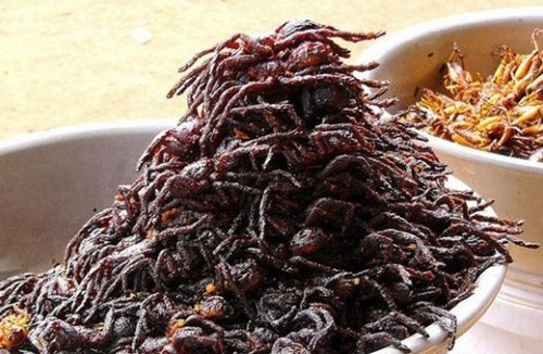 這是一道來(lái)自柬埔寨的獨(dú)特的美味。毒蜘蛛最初是在瘟疫蔓延的年代開(kāi)始被人們食用,但現(xiàn)在,它已經(jīng)成為了一道美味。它的烹飪過(guò)程非常簡(jiǎn)易,在去掉毒牙之后,加熱,然后就可以享用了。