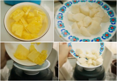![]() 菠蘿君一夜之間就攻占菜店了,買來喝雪梨搭配榨汁喝,酸酸的!?。?br /> 用料: 菠蘿 1/3個 雪梨 1個 涼白開 500ml 蜂蜜 菠蘿雪梨汁的做法: 1、菠蘿切小塊后用淡鹽水泡半小時后沖干凈 2、雪梨削皮切小塊 3、菠蘿塊倒入料理杯 4、雪梨塊倒入料理杯 ![]() 5、加入500ml清水以及一勺蜂蜜 6、我用的是維仕美破壁機~選擇蔬果模式半分鐘左右,研磨的超級細膩,果汁酸甜! ![]() |