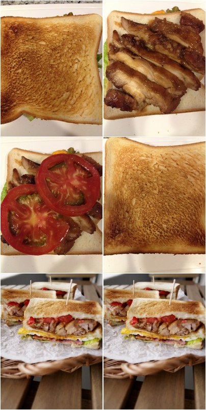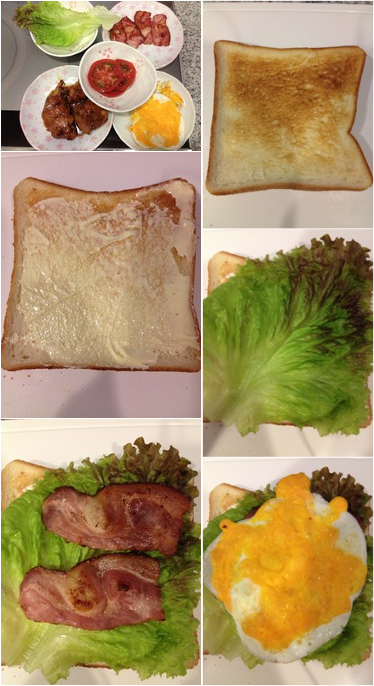 ![]() 好好愛自己,認(rèn)真吃早餐。喜歡在做照燒雞腿時多做一塊,一塊早上做個三明治向自己表達(dá)愛意,一塊留著晚上成為豐盛晚餐的一員。 用料: 吐司 3枚 蕃茄 半個 雞蛋 1個 培根 2條 生菜葉 1片 雞腿肉 1塊 色拉醬 少許 照燒雞腿三明治的做法: 1、準(zhǔn)備食材,蕃茄洗凈切片;生菜葉洗凈擦干;煎好培根;煎蛋(可以將蛋黃稍稍攪散);將做好的照燒雞腿肉切片。 2、將吐司烤到金黃。 3、抹上薄薄的色拉醬。 4、放上生菜葉子。 5、放上培根。 6、放上煎蛋。 ![]() 7、蓋上一片吐司。 8、放上照燒雞腿肉。 9、放上蕃茄片。 10、蓋上最后一片吐司。 11、中間一刀切,用牙簽固定,開吃。 ![]() 小貼士: 只是一個人的量,調(diào)味料可以自己加,喜歡色拉醬,番茄醬,或者是辣醬,都可以自己創(chuàng)意。 |