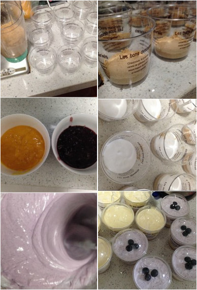 ![]() 因?yàn)橄胪祽?,所以一下做兩種口味的,這個用量大概是12杯左右,覺得多的可以減半 用料: 奶油 400克 手指餅干 160克 藍(lán)莓 200克 芒果 一個 蜜紅豆 適量 吉利丁 10克 水 50克 芒果藍(lán)莓慕斯杯的做法: 1、用料理機(jī)把手指餅干打粉末狀。 2、用勺子挖進(jìn)慕斯杯再用搟面杖輕輕搗實(shí)。 3、用料理機(jī)分別把藍(lán)莓和芒果打成泥狀。 4、奶油打約五分狀,吉利丁片泡軟用50克熱水混合成吉利丁液加速奶油中,繼續(xù)打發(fā)六分狀,加入慕斯杯中,輕震杯體。 5、剩下的奶油分為相同的兩份,分別加入藍(lán)莓泥和芒果泥。 6、分別倒入慕斯杯,輕震杯體,蓋上杯蓋,放入冰箱冷藏(不是冷凍)四個小時。 ![]() |