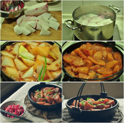 ![]() 去飯店吃飯,點(diǎn)一份肉汁蘿卜總會(huì)是眾矢之的,長(zhǎng)時(shí)間的燜煮讓蘿卜入味而多汁,纖維柔軟易消化,吸收肉湯的精華,全部匯集在半透明的蘿卜中。冬吃蘿卜夏吃姜,是不變的養(yǎng)生法則。 用料: 蘿卜 1、2個(gè) 肉湯 一碗 姜蔥 適量 肉汁蘿卜的做法: 1、蘿卜去皮,切塊。皮留著拌菜。 2、在開水中煮5分鐘。 3、撇去蘿卜清苦味的水,砂鍋中放肉湯,蘿卜,和姜蔥。 4、一直小火燉煮至蘿卜通透。嘗嘗味道,如果淡了還需在肉湯中補(bǔ)鹽或生抽。 5、撒蒜花、香菜末、蔥花和蝦米,出鍋。太好吃了! ![]() 小貼士: 熟蘿卜和蒜花的味道非常搭,在選擇蘿卜表面撒的香味菜時(shí)首選蒜花、其次香菜,再次才是蔥花。 喜歡辣味可以加一點(diǎn)紅干椒。 雞湯也可以煨蘿卜。 |