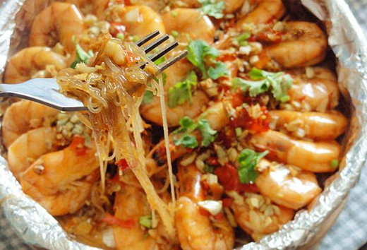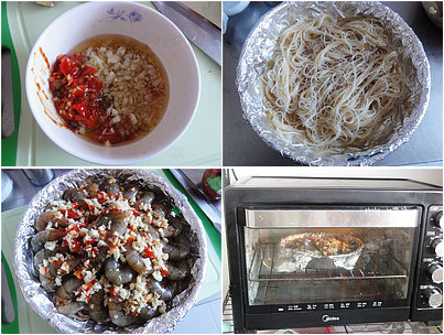 ![]() 材料: 蝦 450克 龍口粉絲 2把 蒜 2頭 姜 2片+2片 生抽 2大匙 黃酒 1大匙 鹽 1平勺(鹽盒里配的勺子,) 糖 1/4小匙 剁椒 1/2大匙 白胡椒粉1/4小匙 食用油 2大匙 蒜蓉粉絲烤蝦的做法: 1、粉絲提前用溫開水浸泡。 2、蝦洗凈,在背脊處開一刀,去除蝦線。 3、處理好的蝦全部放入料理盆中,加入生姜2片、生抽、料酒、鹽、白胡椒粉和糖拌勻。 4、將三分之一的蒜瓣拍碎,切末放入,拌勻后蓋保鮮膜冷藏腌制1-2小時。 ![]() 5、將剩下的兩片姜和2/3的蒜瓣剁成茸,與剁椒一起放入小碗。將食用油上鍋燒熱熬至冒煙后澆入。 6、披薩盤或者烤盤鋪錫紙,將泡好的粉絲稍微瀝一下水分放入烤盤。取出腌制好的蝦,將其中的腌料倒入烤盤與粉絲拌勻(覺得不夠可以再加點生抽)。 7、將腌制好的蝦擺在粉絲上,淋上步驟5做好的蒜茸和油。 8、放入預(yù)熱好的美的烤箱,中層上下管200度烤制15分出爐。 ![]() |