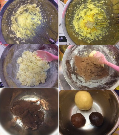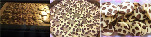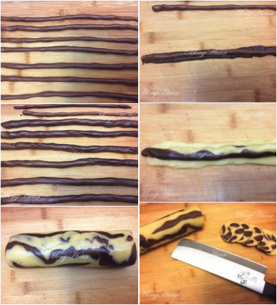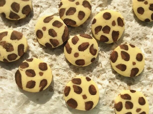 ![]() 用料: 無鹽黃油 70g 糖粉 40g 蛋液 25g 低筋面粉 130g 可可粉 5g 純咖啡粉 3g 28*28烤盤 1個(此配方1盤的量) 豹紋餅干的做法: 1、黃油室溫軟化加糖分打發(fā)至發(fā)白。 2、分三次加入蛋液,每次攪拌均勻再加下一次。 3、篩入低筋面粉,翻拌至黃油和面粉融合,成顆粒狀。 4、取出重量的三分之一大約80克左右篩入可可粉。 5、再將拌好的可可面分出一半,大約40克左右加入純咖啡粉。 6、最后形成三個光滑的面團。 ![]() 7、將可可面團搓成7-8根大約20厘米長的條,不需要粗細均勻,這樣更自然。 8、再將咖啡面團也搓成7-8個長條,取一個壓扁,將可可面條放在上面包在外面。 9、大概搓圓,不要粗細一直,不要太整齊,否則出來來的花紋不自然。 10、取一塊白色面搓成長條壓扁,將可可咖啡面條包在里面,不用包裹很嚴密。 11、將包好的面條進行組裝,注意黑色部分要錯開,用白色隔開,不能連在一起,然后組裝成一個大約20多公分的圓柱體,用保鮮膜包好,放入冰箱冷凍30分鐘。 12、將面團取出,用鋒利的刀切成3-4mm厚的薄片,每切一片都是驚喜,片片不同。 ![]() 13、擺入烤盤,不可以緊挨著,預(yù)留一點空間,烤制過程餅干會變大。中層160度15分鐘,最好在烤箱下層放一個烤盤,以免餅干底部上色影響美觀。 14、取出后放涼。 15、涼透裝入密封盒,以免受潮。 ![]() 小貼士: 咖啡粉一定要用純的,無糖無奶的,否則顏色深度不夠,我是用咖啡豆自己粉碎的;烤箱不同會有溫差,請大家自行調(diào)節(jié);糖量的多少也可以結(jié)合喜好進行調(diào)節(jié)。 |