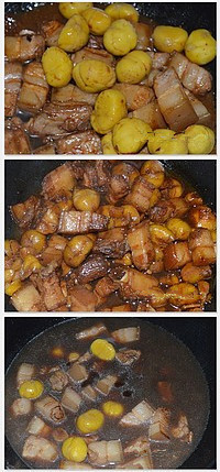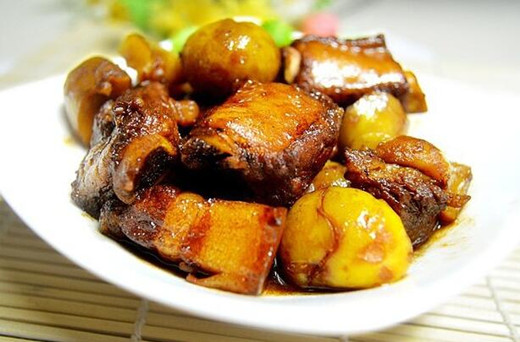 ![]() 栗子正當(dāng)令,滿街栗香,街頭巷尾,剛出爐的冒著熱氣的糖炒栗子,總引得路人駐足解囊,熱呼呼的栗子,捧在手中,邊走邊吃,異常愜意。 用料: 板栗 300g 五花肉 500g 生姜片 適量 老抽 1勺 料酒 2勺 醋 少許 白糖 1勺 鹽 少許 雞精 少許 栗子燜肉的做法: 1、將栗子用刀在表皮上切上一刀,將切好的栗子放入鍋內(nèi)煮至七成熟. 2、將煮好的栗子從鍋內(nèi)撈出,快速投入冷水中。用手把板栗殼沿刀口撕開,就可剝出栗肉了。 3、將五花肉放入鍋中用水焯至半熟,撈出五花肉放涼。將五花肉切成塊備用。 4、鍋熱后倒油,放入白糖,糖放入鍋內(nèi)小火用鍋鏟不停的攪拌溶至金黃色(就是開始起油泡的時(shí)候);然后倒入切好的五花肉,不停的快速翻炒,五花肉裹上糖色變至金黃,這時(shí)放入姜片翻炒。(翻炒一定要快,不然肉就焦了)。 ![]() 5、倒入老抽1勺、料酒2勺、醋少許,加入調(diào)料之后再倒入剝好的板栗,快速翻炒兩分鐘。 6、倒入熱水,沒(méi)過(guò)五花肉和板栗,蓋上鍋蓋大火煮開后轉(zhuǎn)小火燉1個(gè)小時(shí)左右。 7、小火燉到三十分鐘的時(shí)候翻炒下鍋里的板栗和肉,并撒少許鹽;最后看湯汁差不多濃稠時(shí)大火收汁下即可。 ![]() 小貼士: 1、紅燒肉炒糖色最好是選用冰糖或紅糖,冰糖會(huì)讓肉的色澤更亮。 2、五花肉焯過(guò)水后,一定要瀝干水。 3、糖色炒好后倒入五花肉時(shí)一定要小心,不要讓熱油濺到身上以免燙傷。 |